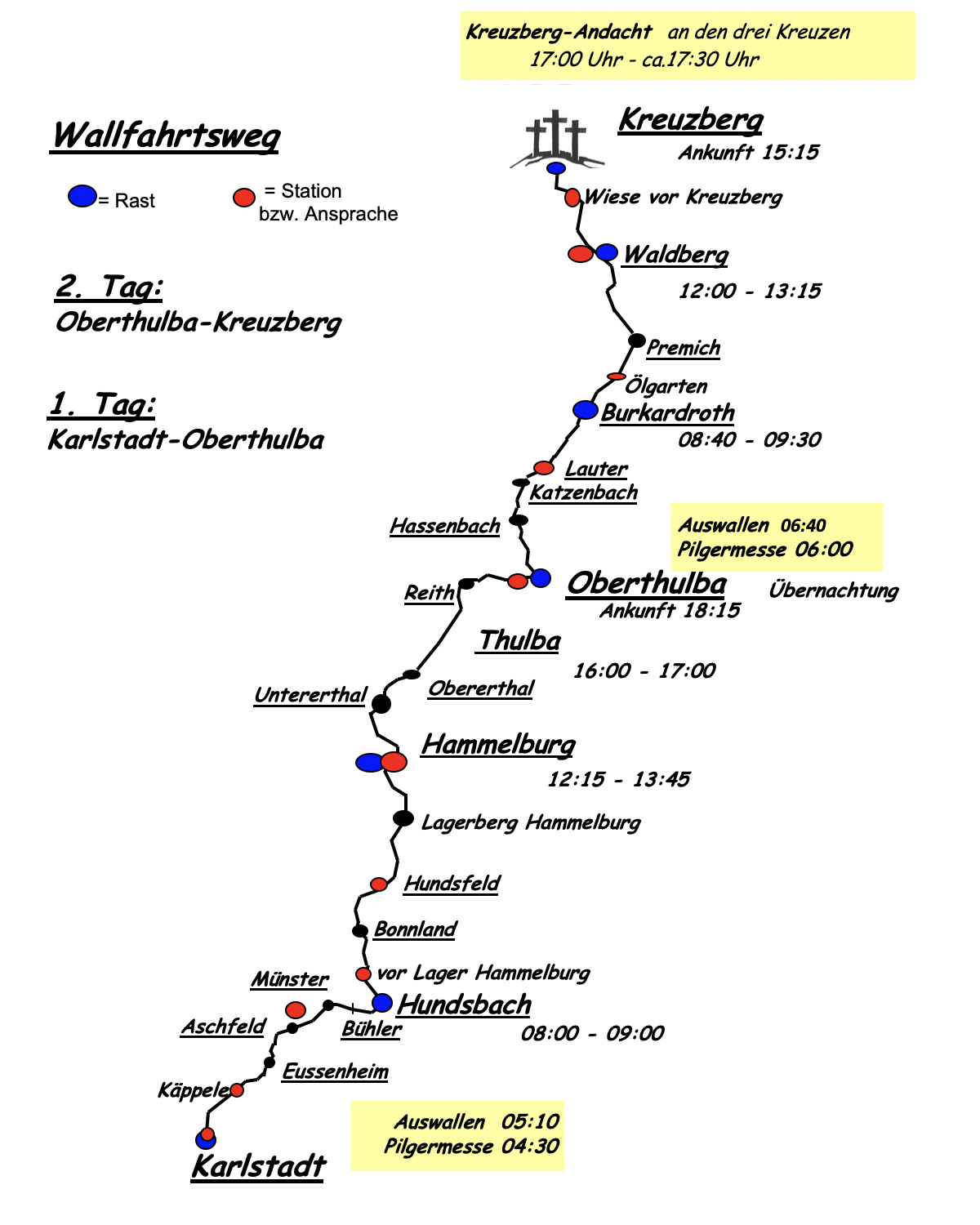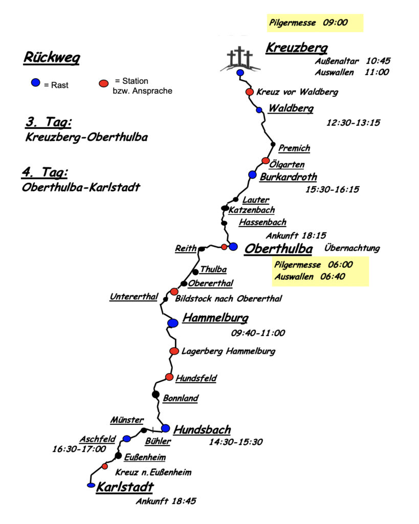 Gleich dem Kreuzweg unseres Herrn sind die vier Tage unserer mühseligen Wallfahrt ein Weg der Läuterung und der Kontemplation. Mit neuer Kraft und neuem Lebensschwung geht es in das Leben zurück.